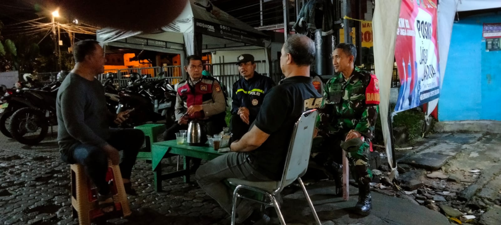 Dalam kunjungannya, Aiptu N. Krisnadi berkoordinasi langsung dengan Bapak Ratno selaku petugas keamanan setempat serta berdialog dengan beberapa warga RW 02 yang sedang berjaga.